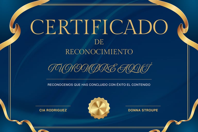 Reconocemos tu esfuerzo y dedicación. Recibiras un certificado de finalización con tu nombre cuando completes 8 días con nuestro programa. Te llegará vía correo electrónico el cual podrás descargar e imprimir.